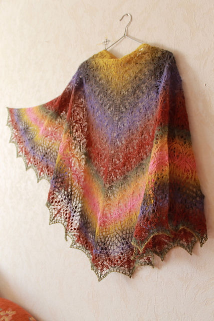 Повтор палантина Весенние листья. Размер 180 на 56 см, вес 110 г, пряжа Seam Angora fine 50% мохер, 50% нейлон, спицы 3.5 деревянные кубики KnitPro. Вязала неделю, ниточки в работе не очень понравились, больше не буду такие брать, неожиданно довольно колючий получился... Сама модель по-прежнему очень нравится)